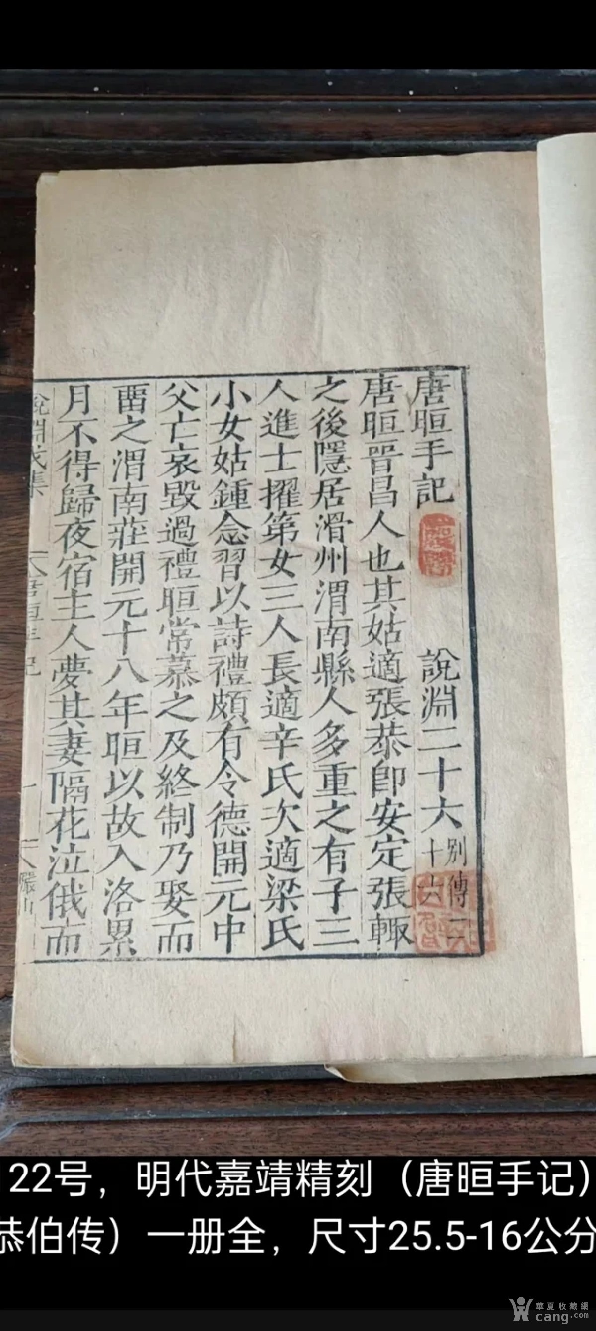 122号,明代嘉靖精刻(唐晅手记)(王恭伯传)一册全