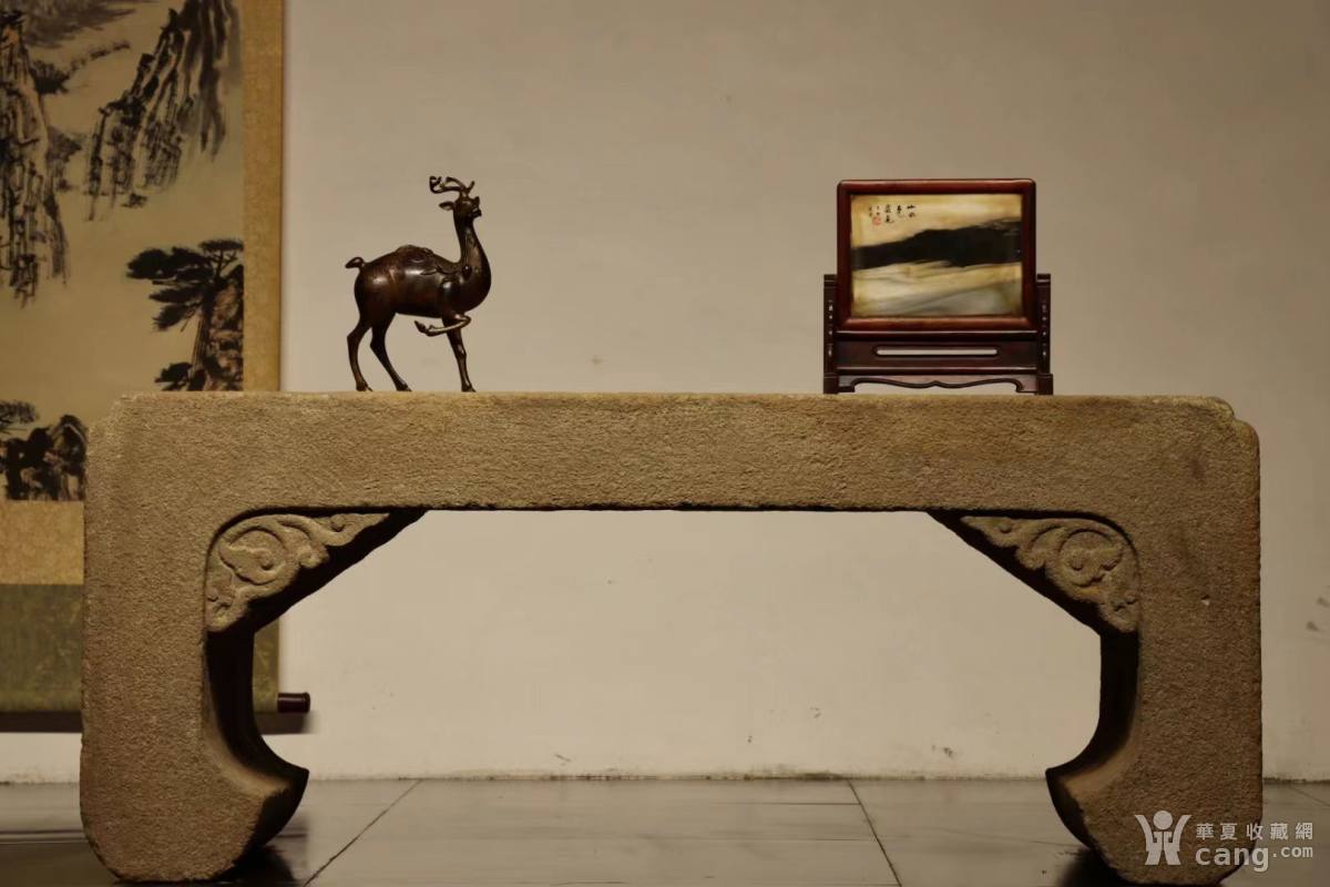 石桌 卷几 砂石 长120宽50.5高50 器型硕大厚重
