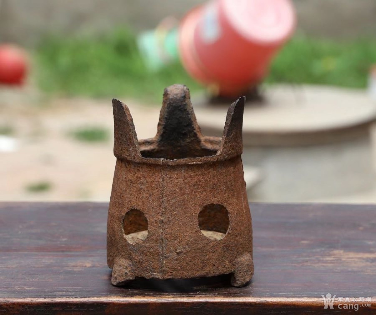 清代温酒铁炉,上面三足外撇,下面四面圆孔,铸铁置,口直径12