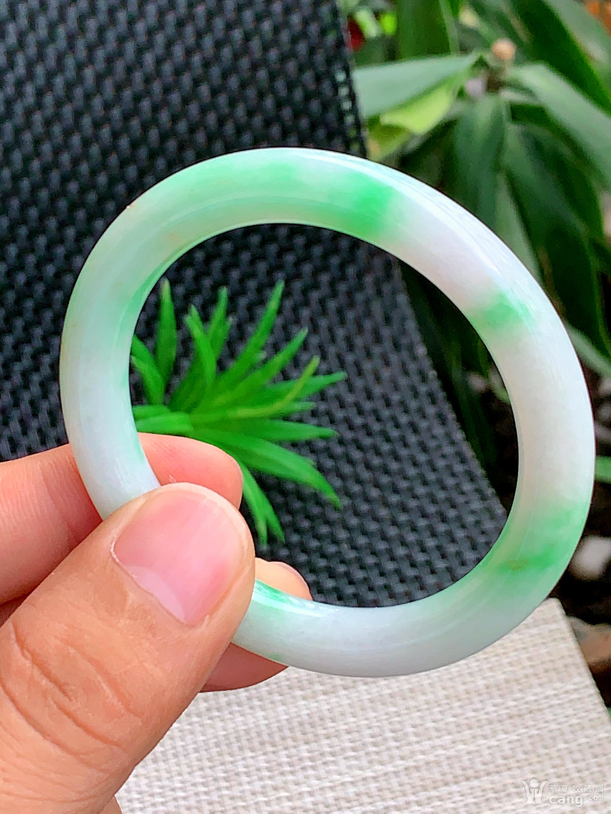 缅甸天然翡翠A货冰润飘阳绿圆条手镯53.2圈口