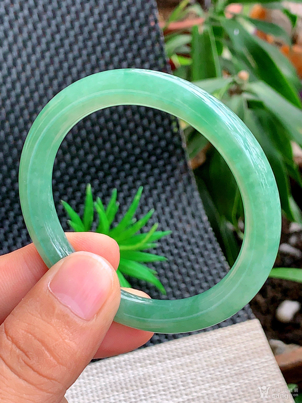 缅甸天然翡翠A货冰透水润满绿圆条手镯55圈口
