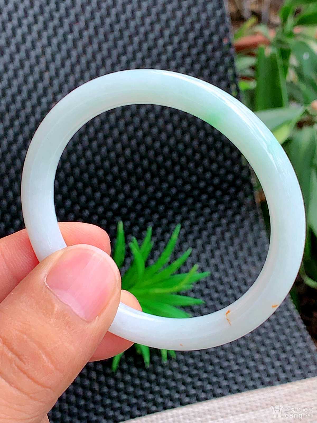 缅甸天然翡翠A货冰润飘花圆条手镯53.6圈口