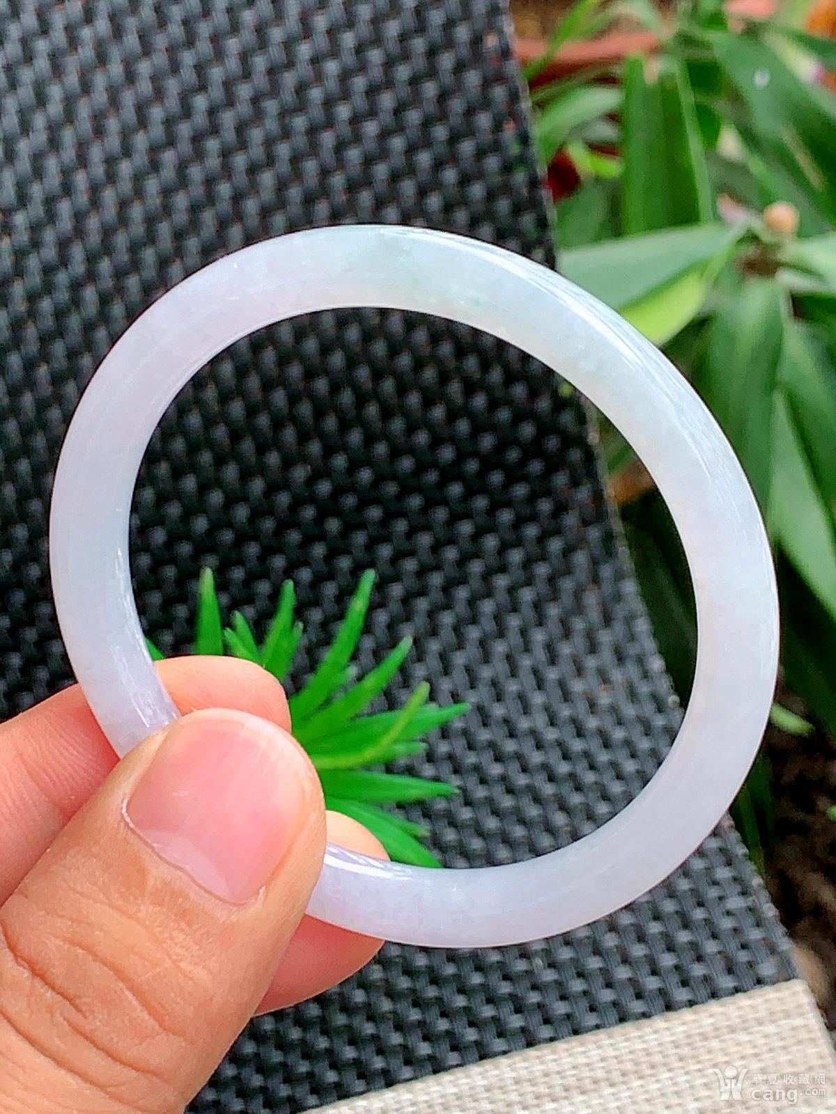缅甸天然翡翠A货冰透水润淡紫圆条手镯56圈口