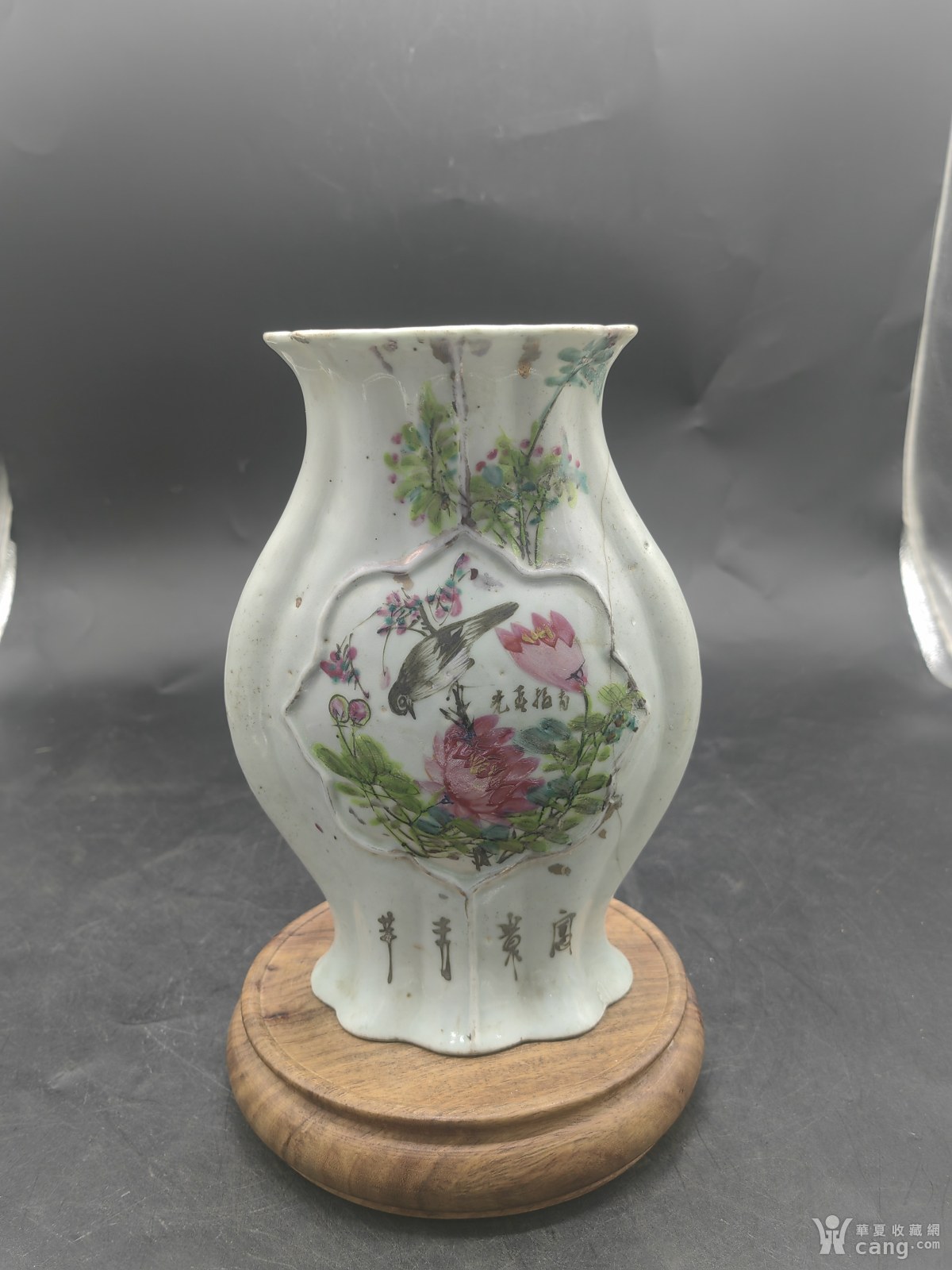 清代浅降彩花鸟包月瓶