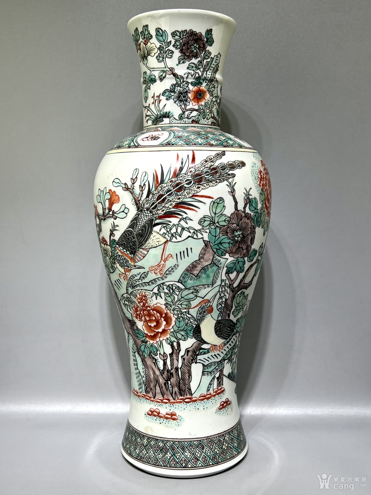 民国五彩洞石锦鸡牡丹纹大观音瓶