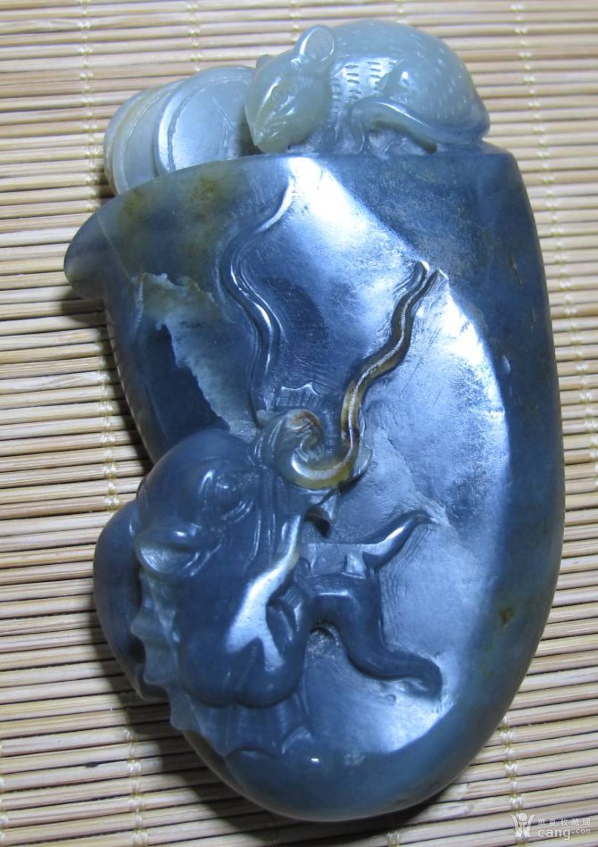 青花籽料子辰把玩件老鼠运财数钱黑白分明ys9-1