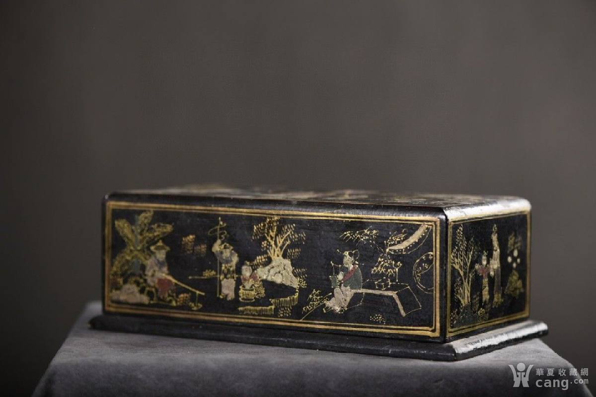 木胎手绘描金漆器人物故事文房盒 长27cm 宽15cm