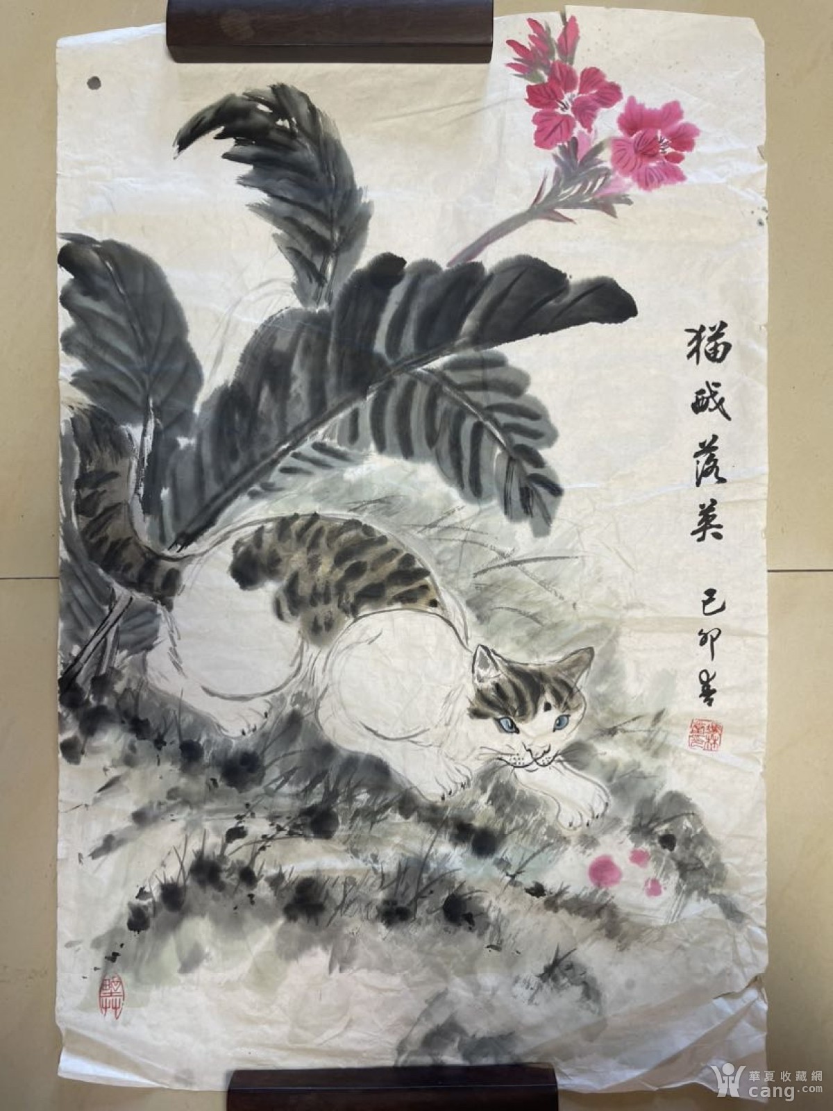 冯林堂花卉画猫咪画字画作品纯手绘国画条幅