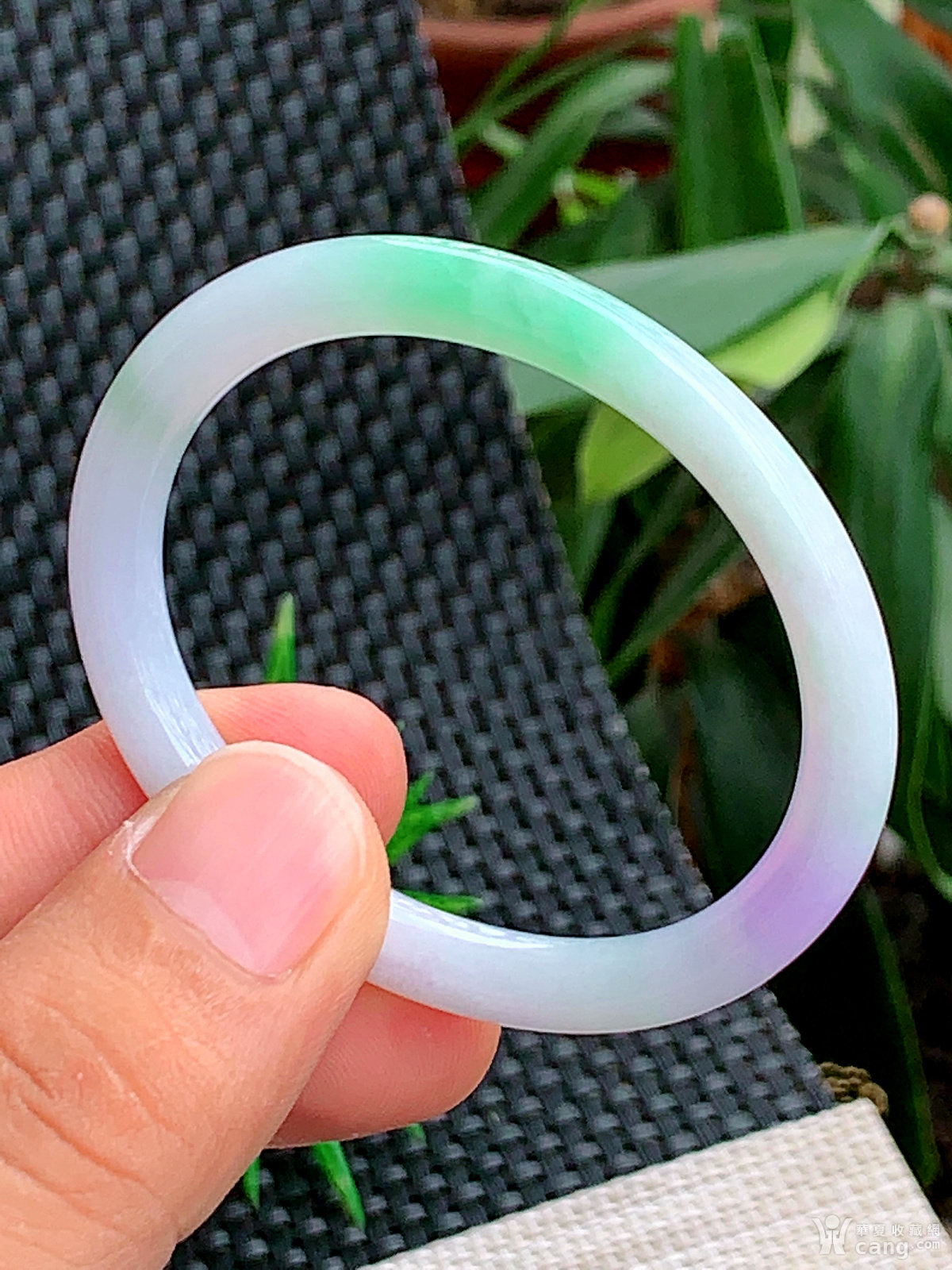 缅甸天然翡翠A货冰透水润春带彩圆条贵妃手镯51.5圈口