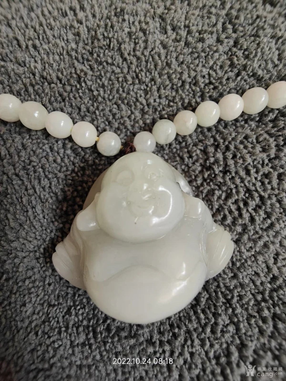 [糖羊脂白玉]和田玉糖白玉笑口常开弥勒佛挂件吊48.85g