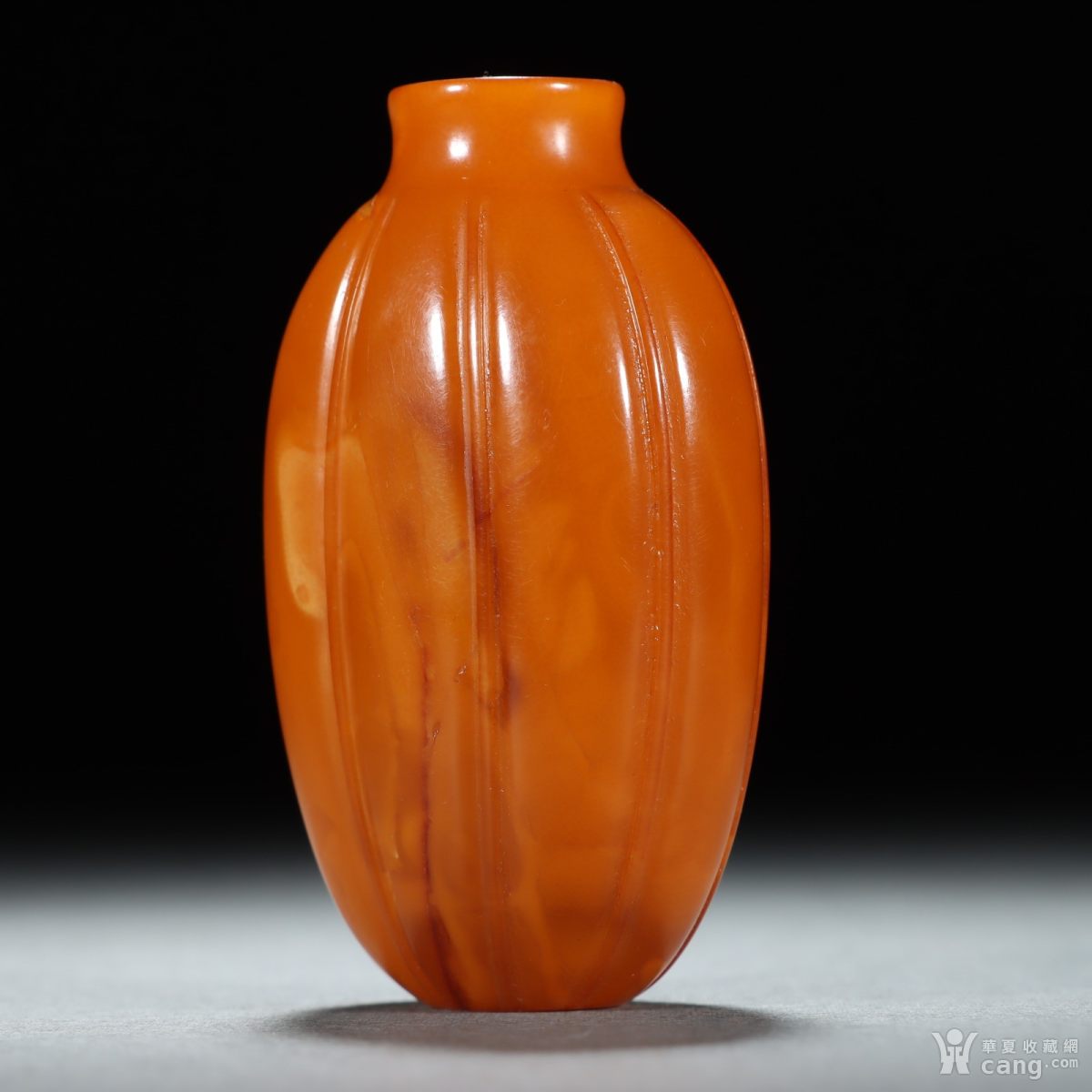 清代 老蜜蜡瓜棱形鼻烟壶。