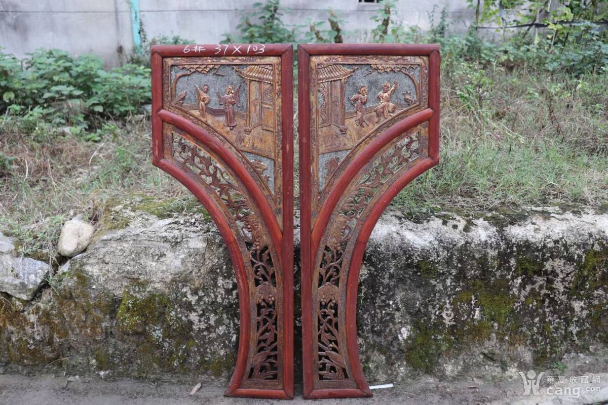 民俗老物件 怀旧老家具 镂空精品描金老木雕花板挂屏一对