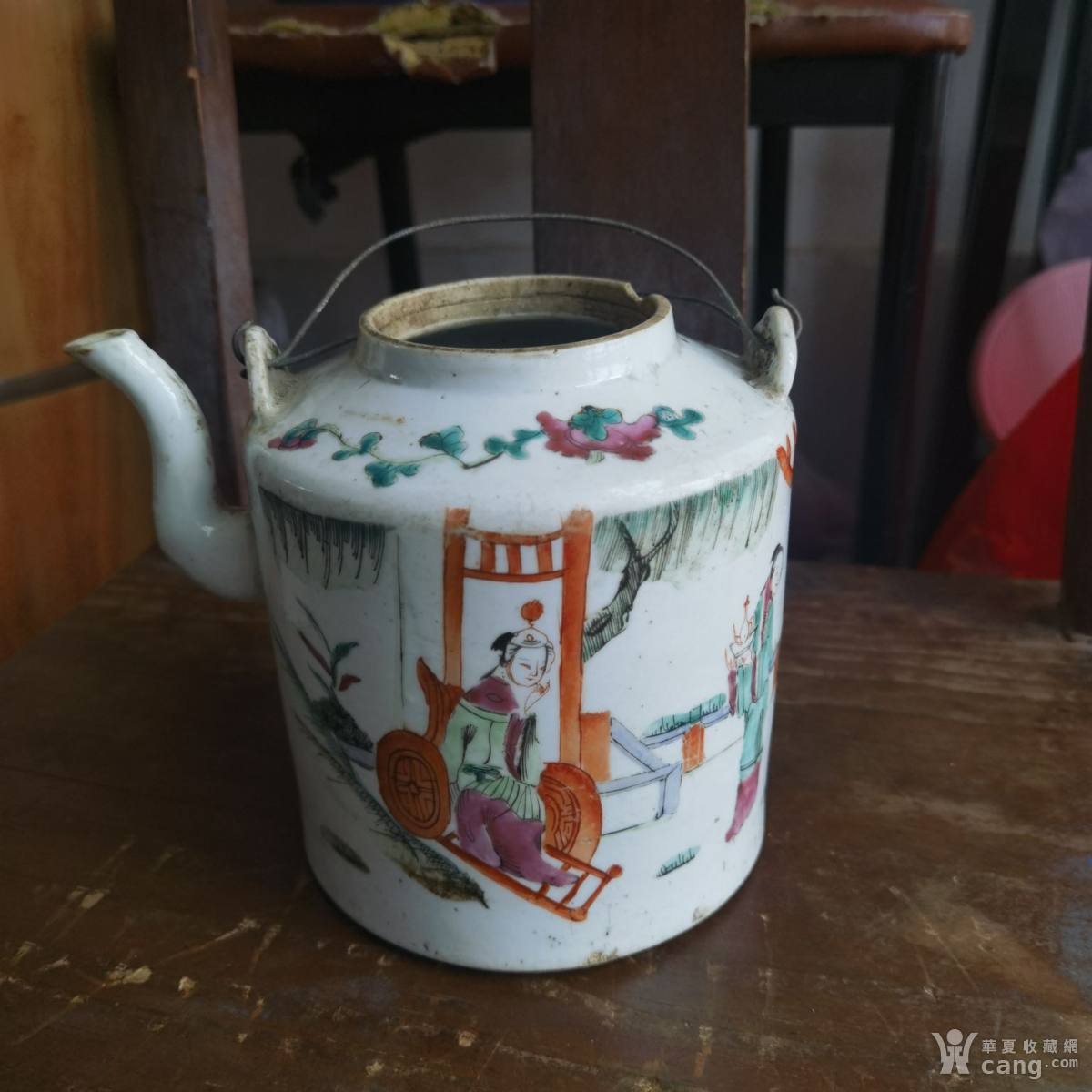 同治粉彩人物西厢记张生赶考茶壶,高14.8,直径13,