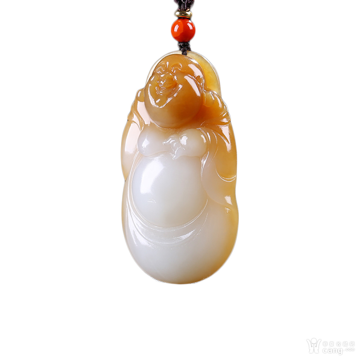 [糖羊脂白玉]和田玉糖白玉笑口常开弥勒佛挂件吊48.85g