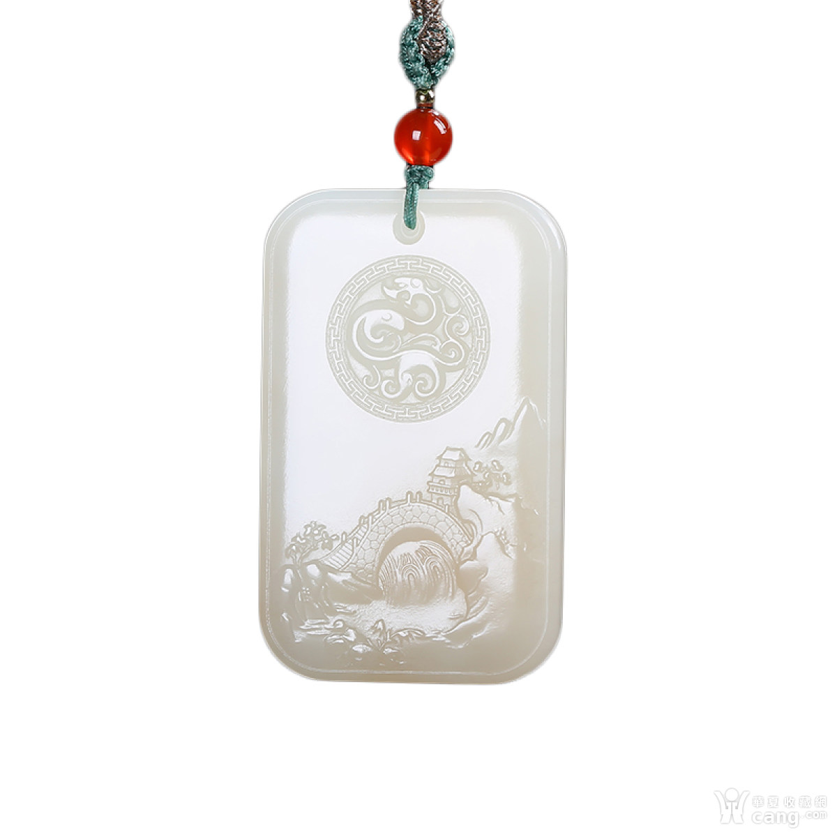 [山河秀色]和田玉白玉藕粉山水仿古瑞兽牌子挂件吊坠27.68