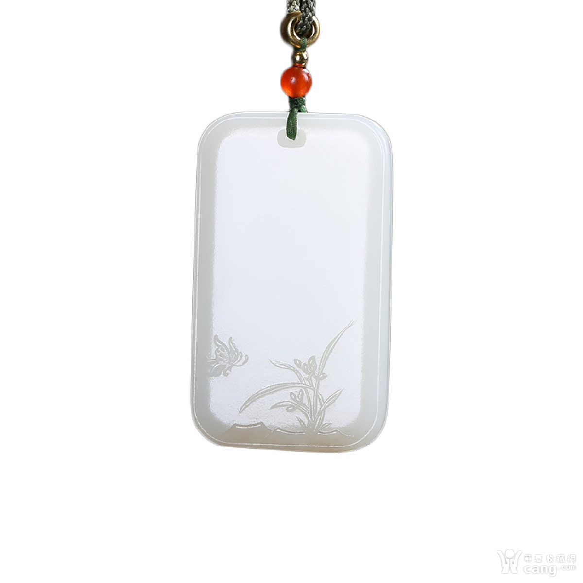 [花开富贵]和田玉白玉藕粉兰花蝴蝶仿古牌子吊坠27.45g