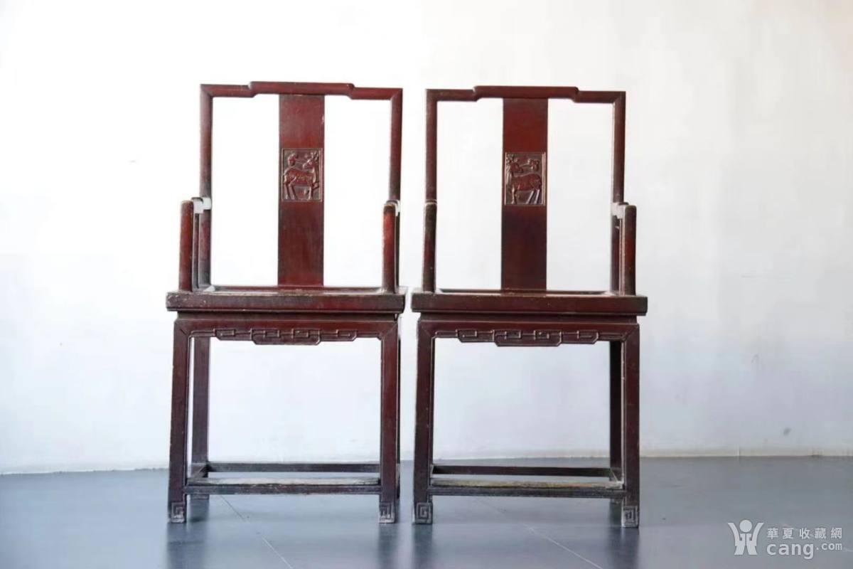 清代玫瑰椅,一对完整,此椅以方主,背板雕刻梅花路。包老无修,