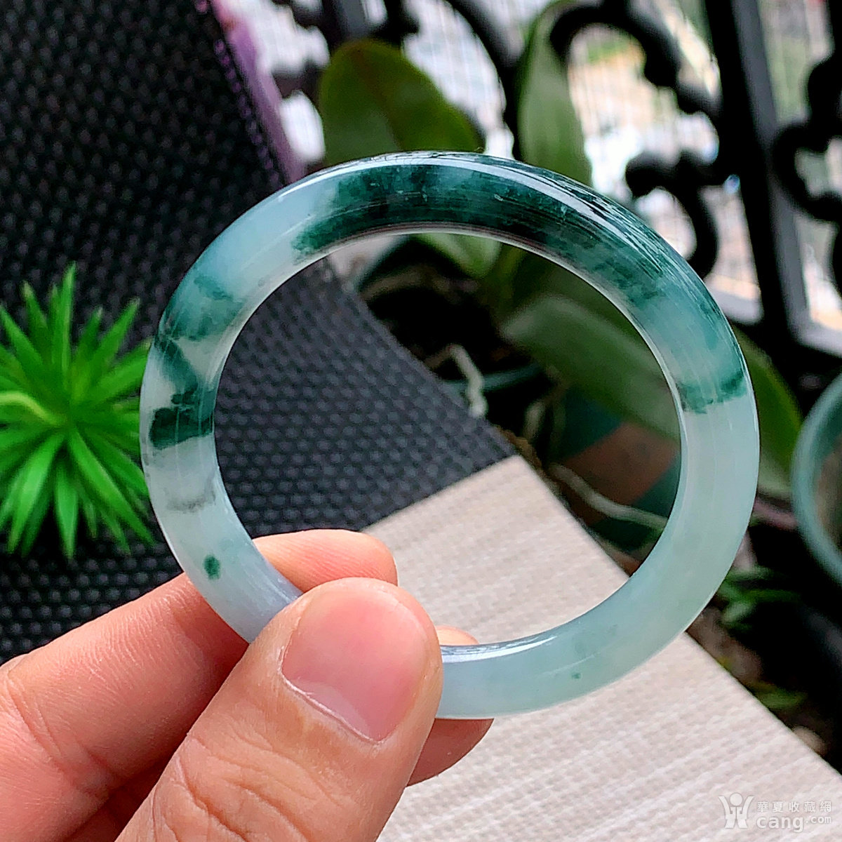 缅甸天然翡翠A货冰透水润飘花圆条手镯52.6圈口