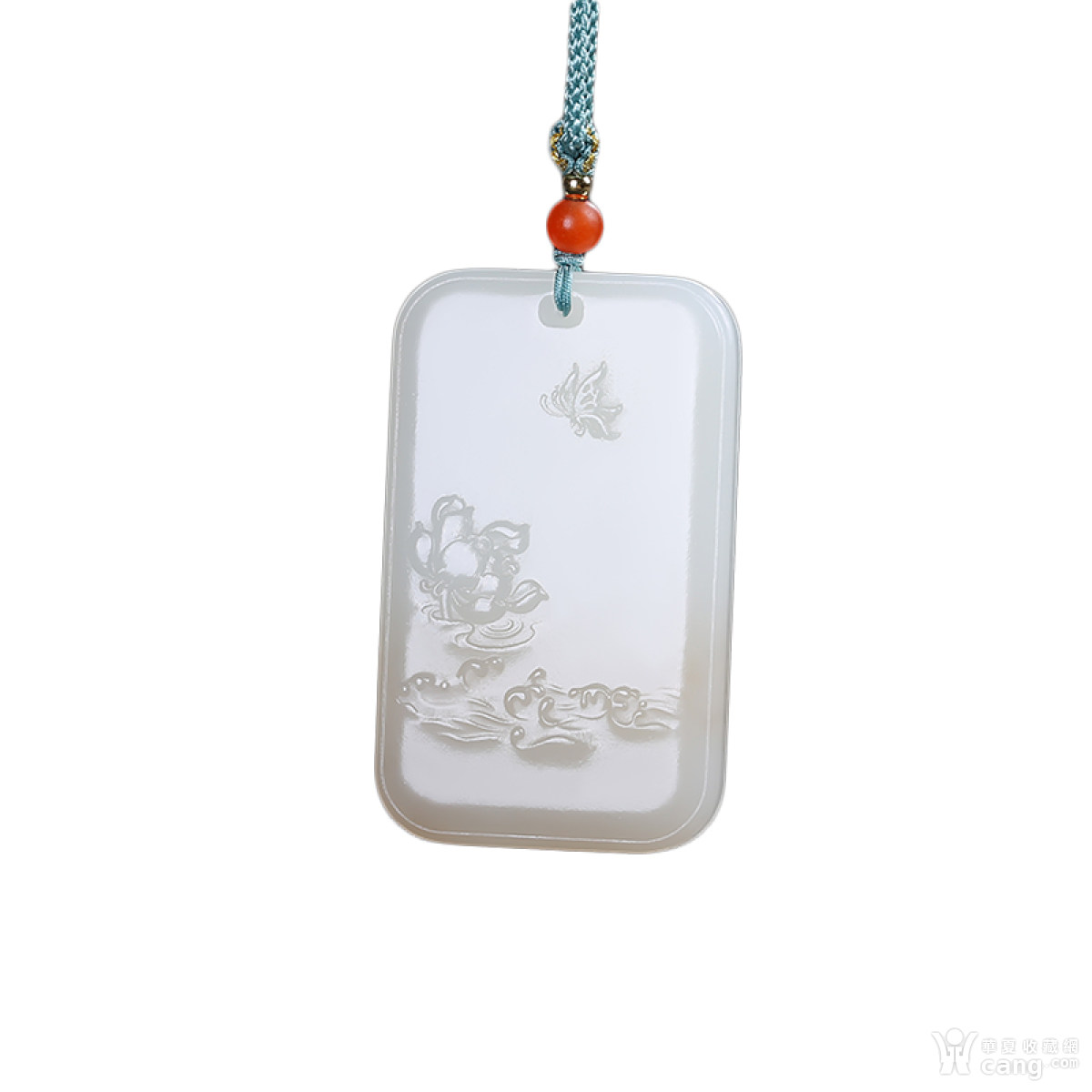 [花开富贵]和田玉白玉藕粉莲花蝴蝶仿古牌子挂件28.41g