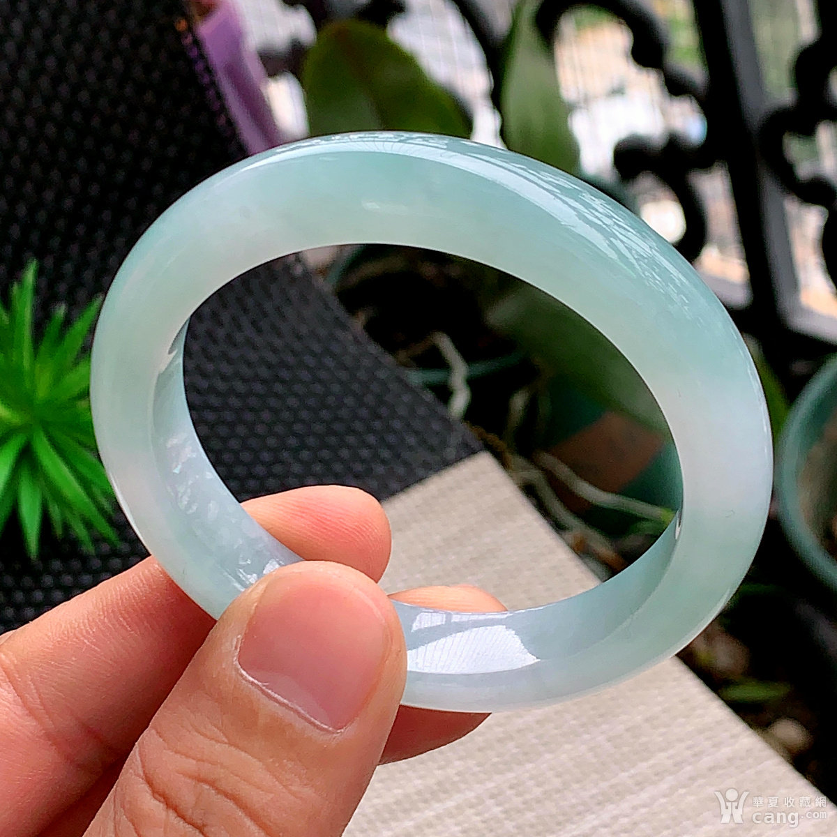 缅甸天然翡翠A货冰透水润飘绿宽边手镯56.2圈口