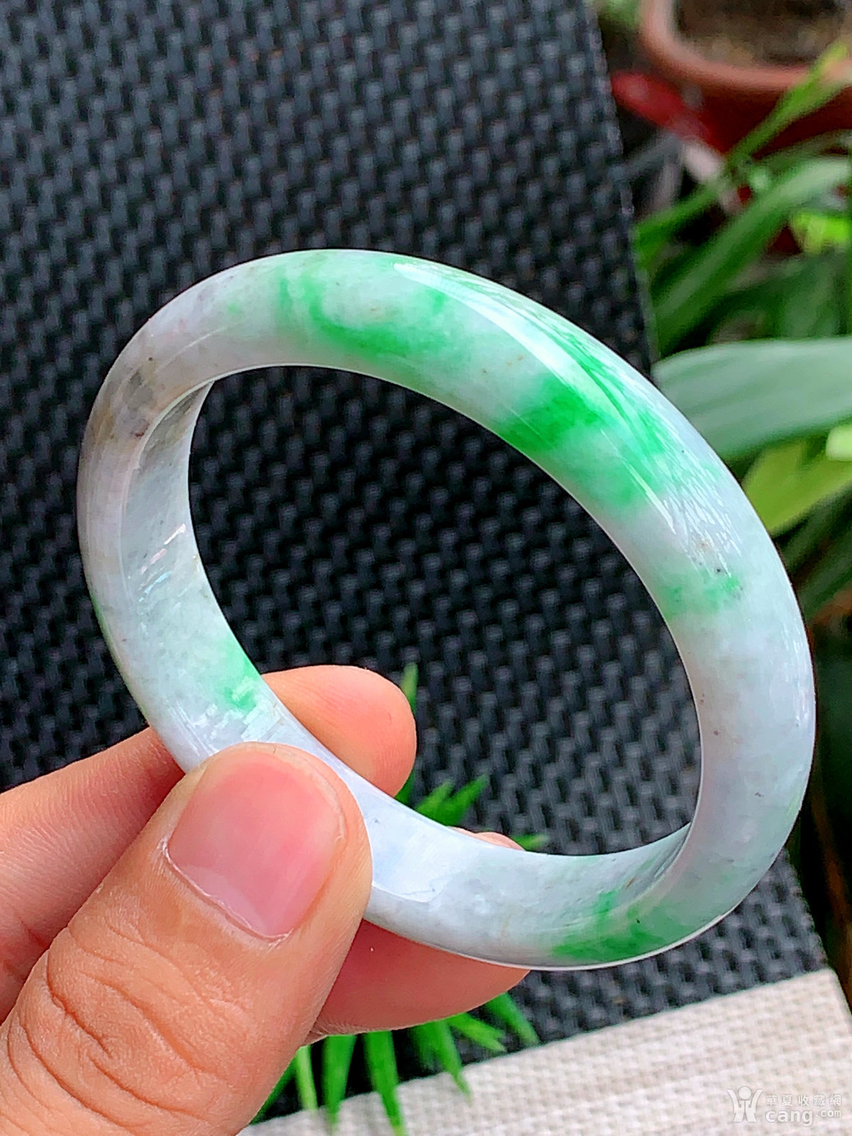 缅甸天然翡翠A货冰润飘花宽边手镯57.8圈口
