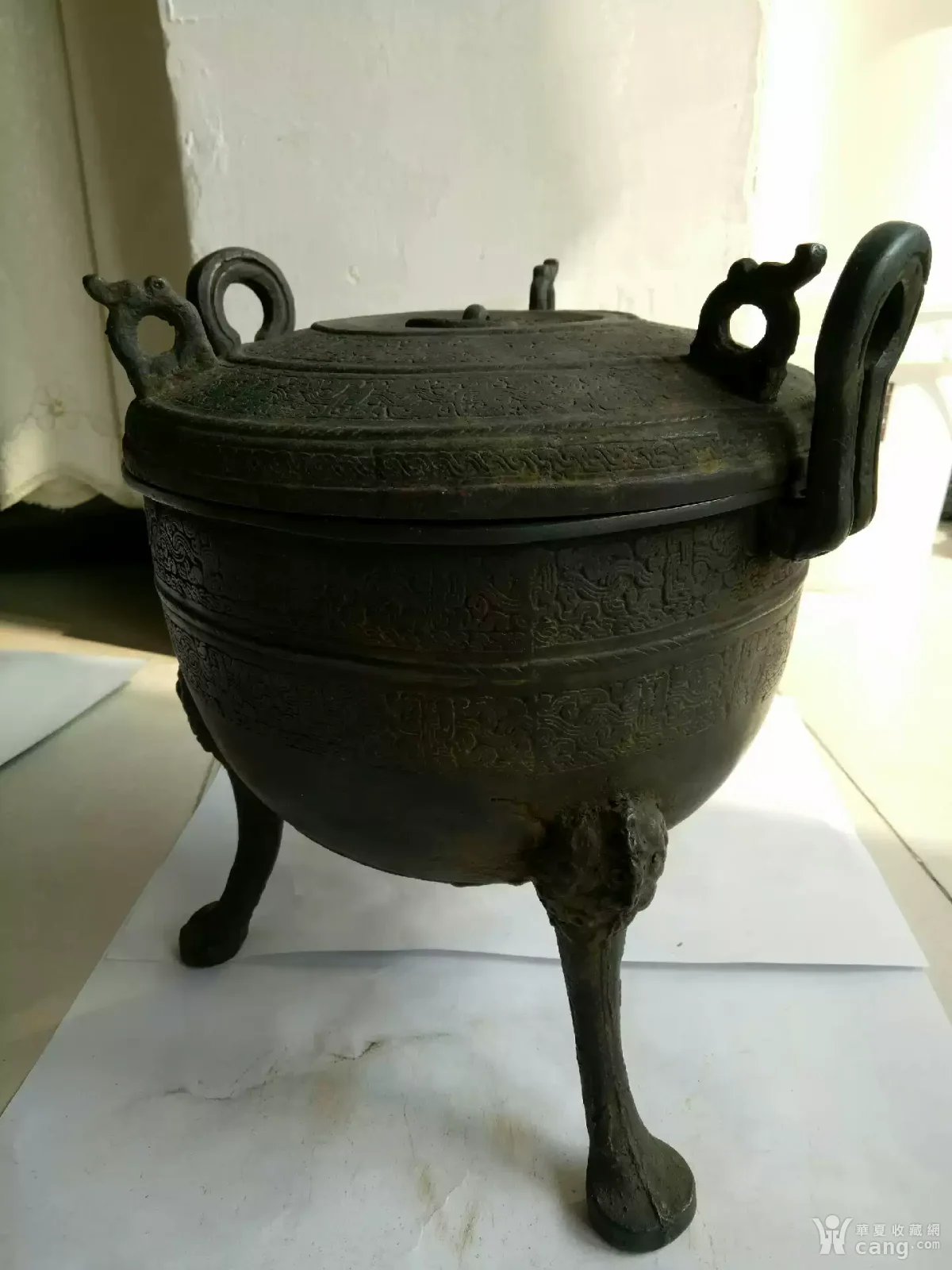 战国青铜鼎 水坑黑皮,时代为战国。其中一个腿和腹部的连接处有
