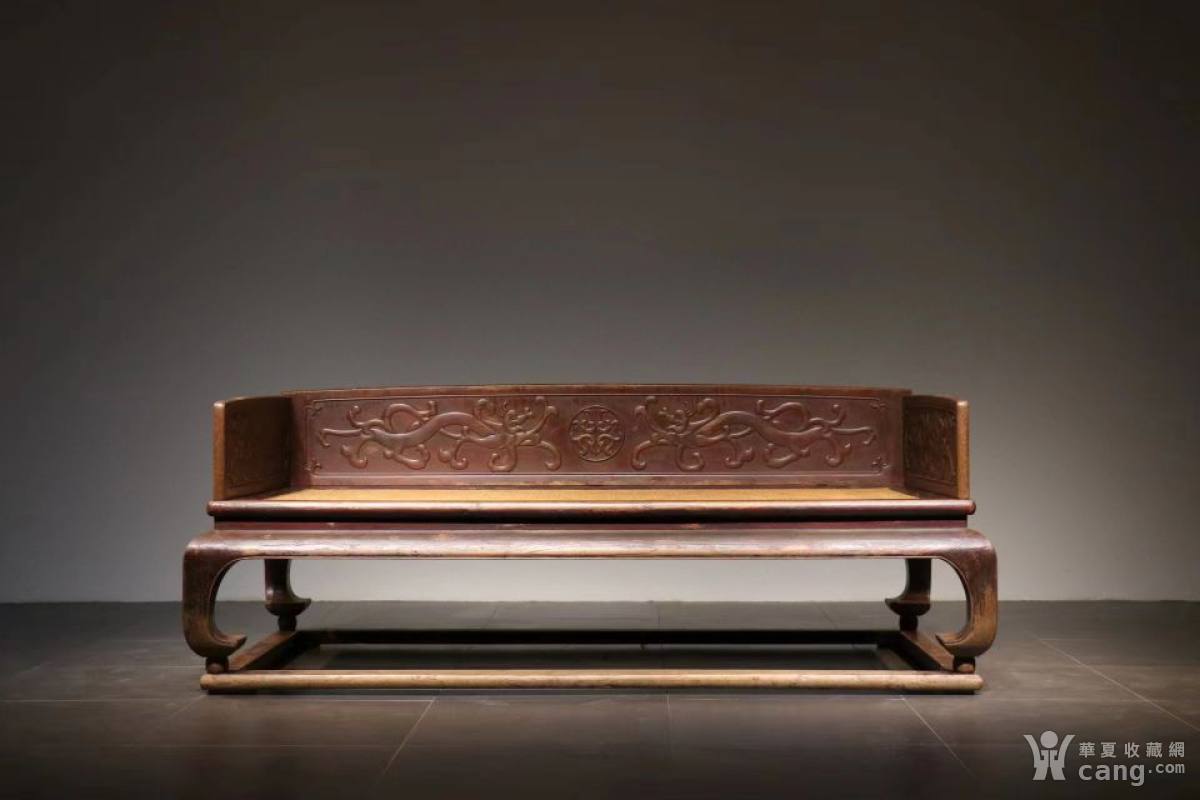 三屏封罗汉床,榆木, 围板雕草龙,龙型极威标憨,具有宫庭龙威