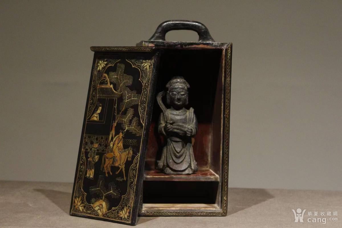 描金彩绘 富丽堂皇 黑漆描金提盒 全品完整 品相甚好