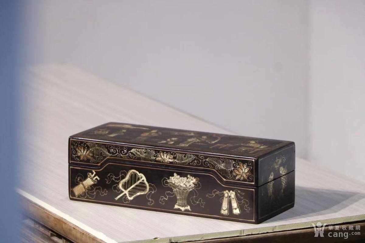 清|雅器文盒 此器楠木胎通体描金,盒面描金