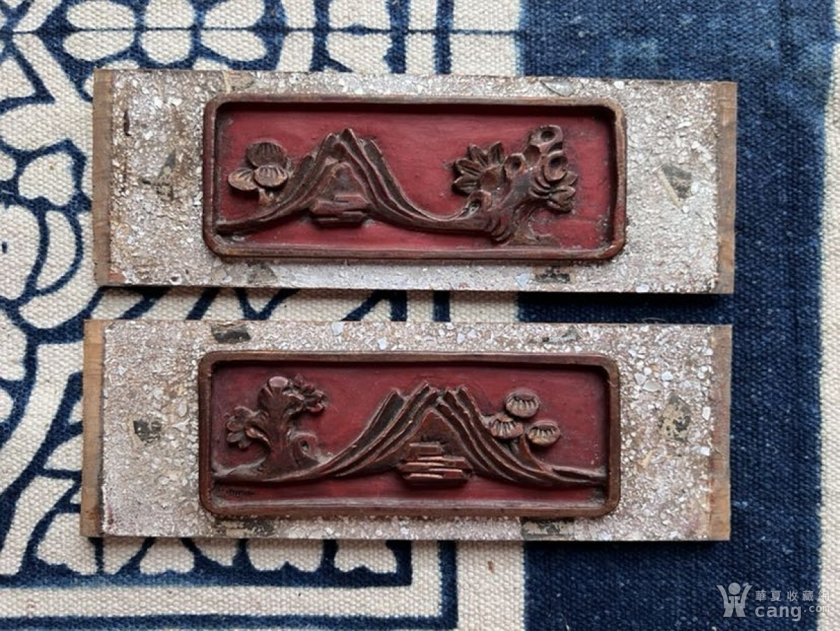 老花板木雕板二片山水小板