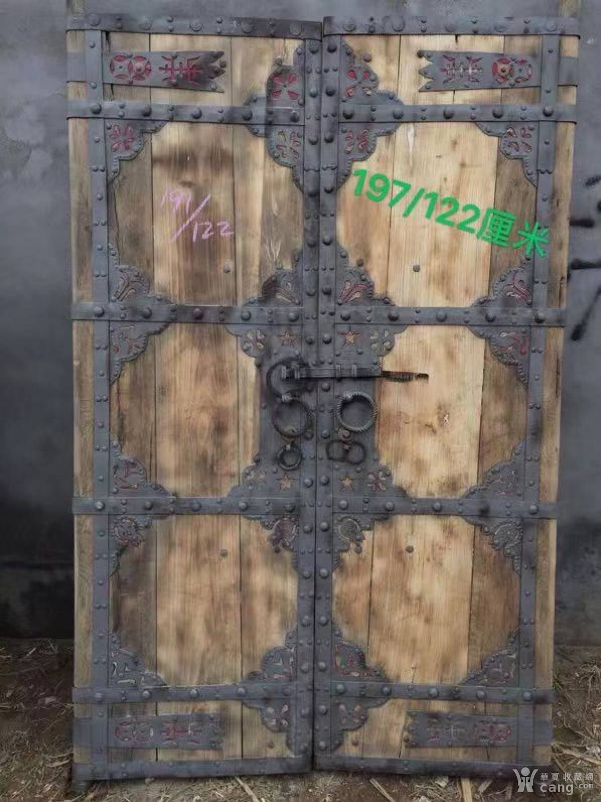 老榆木铁艺大门、庭院门,清晚期,门板用料厚实,铁艺纯手工锻打