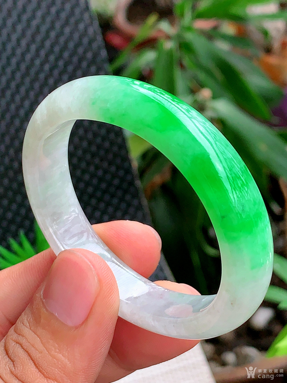 缅甸天然翡翠A货冰透水润飘阳绿贵妃手镯55圈口