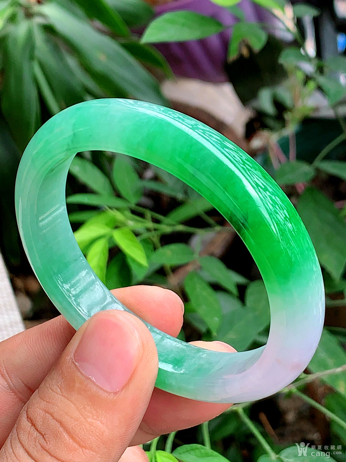 缅甸天然翡翠A货冰透水润飘阳绿贵妃手镯57.8圈口