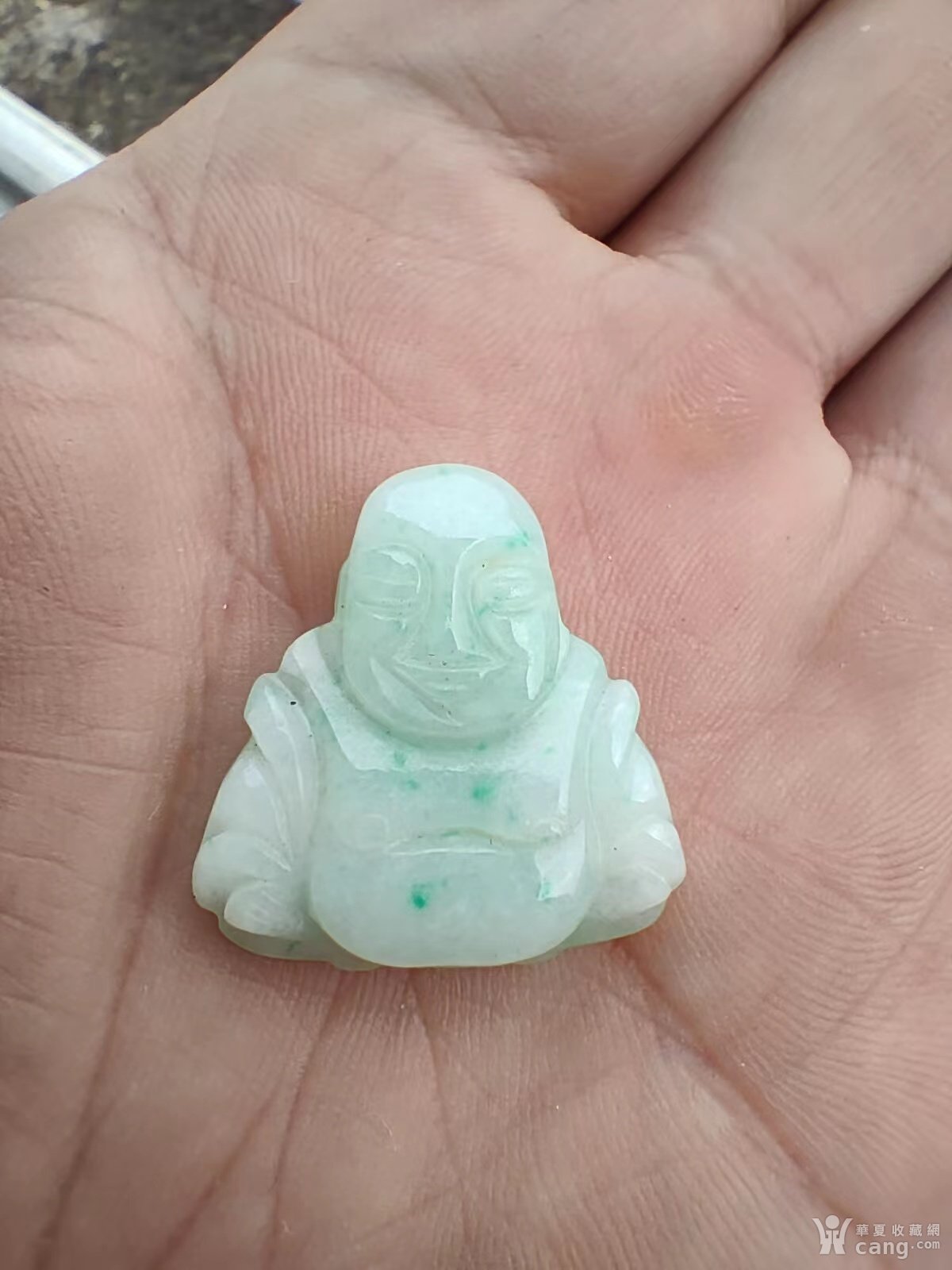 老玉=翡翠=古玩=创汇时期=民间收来糯种飘绿圆雕笑佛