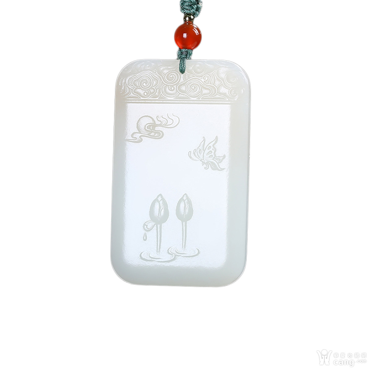 [吉祥如意]和田玉白玉藕粉莲花蝴蝶仿古牌子吊坠28.09g