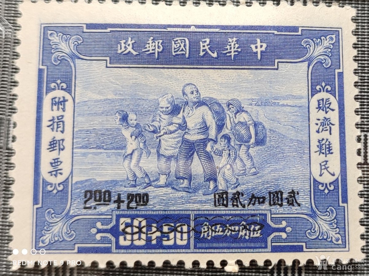 全新原票民国难民赈济贰圆加贰圆邮票稀少F73
