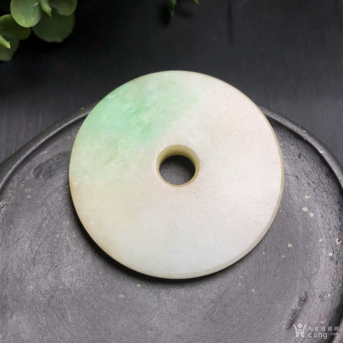 F338清代白地青飘阳绿翡翠平安扣吊坠