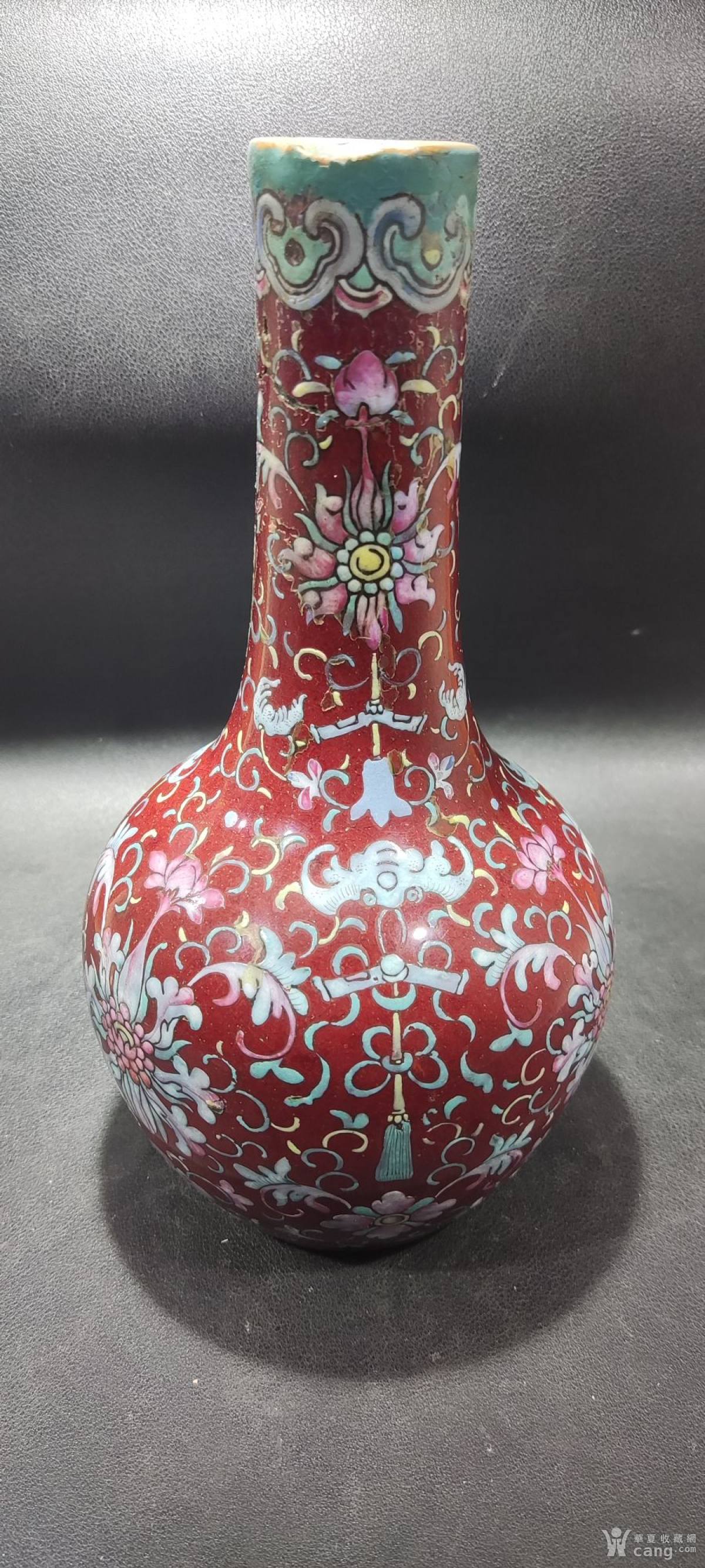 清代乾隆红釉天球瓶