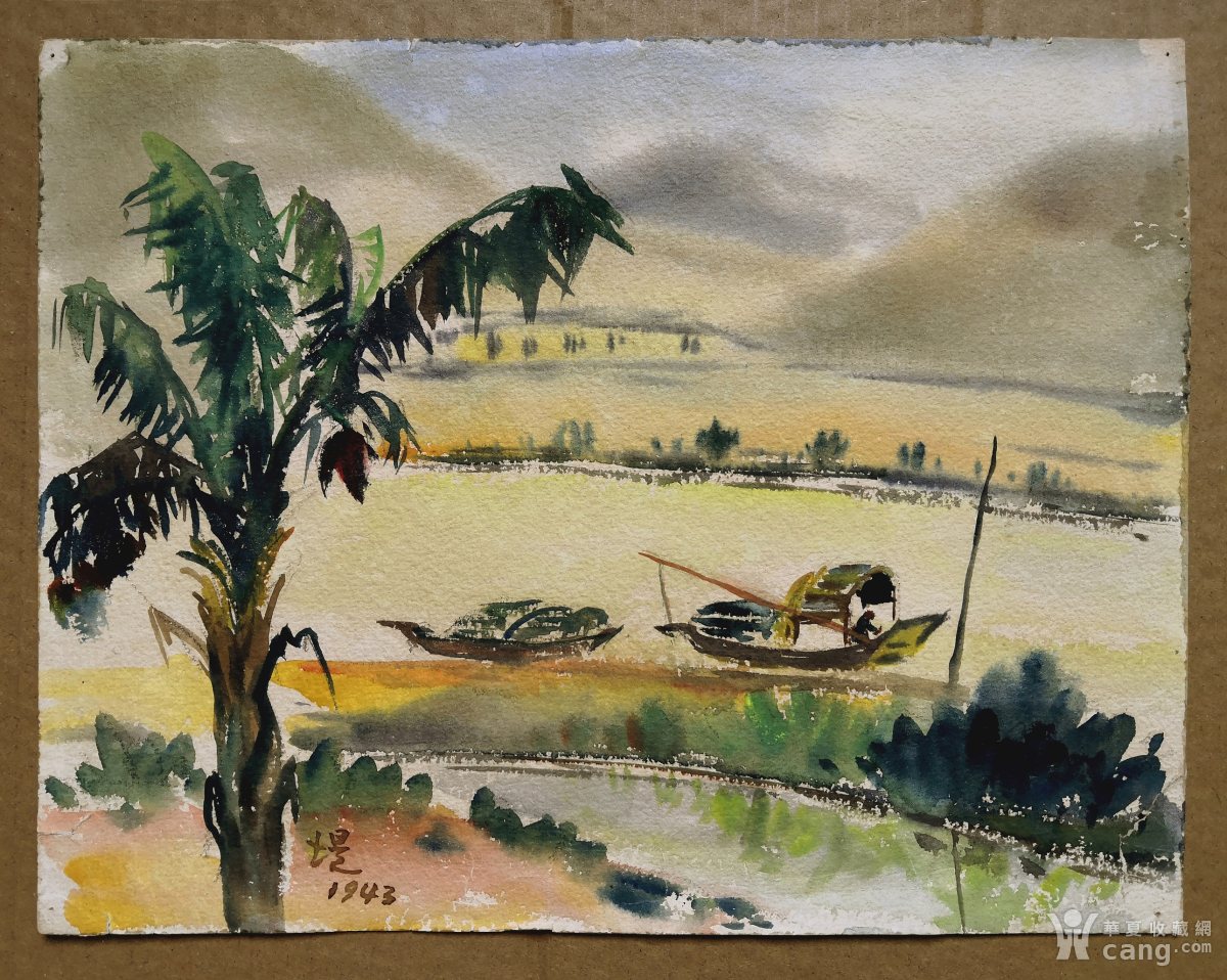 丘堤《渔舟唱晚》水彩 23×29cm 1943年