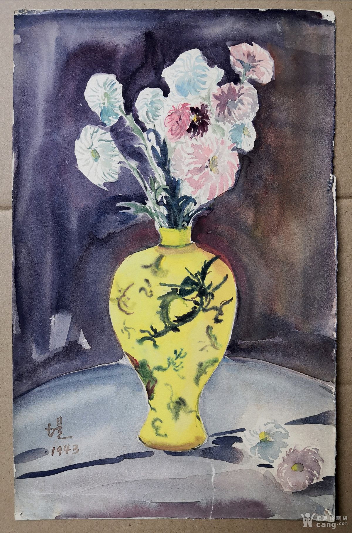 丘堤《瓶花》水彩 29.5×19cm 1943年
