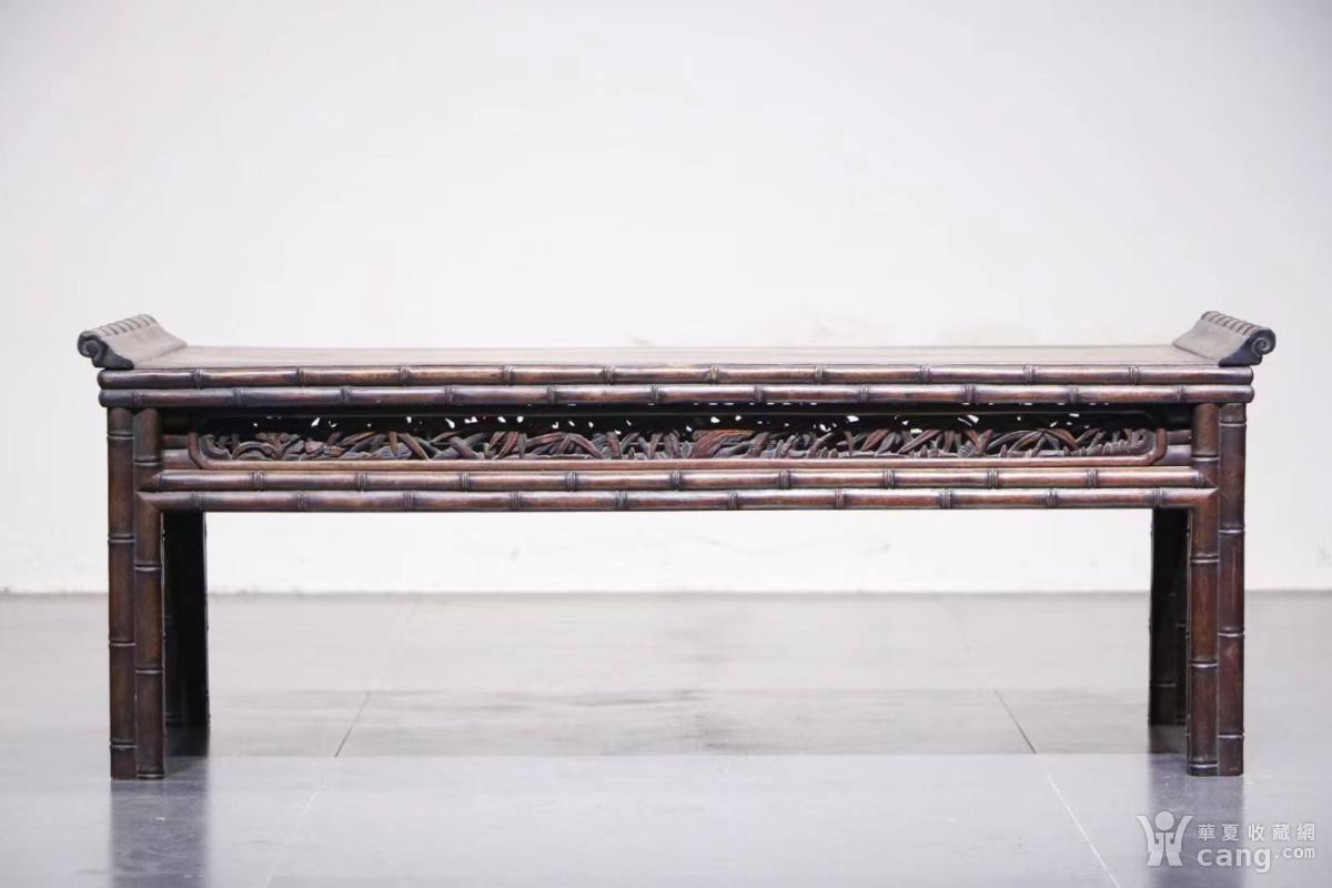 金丝楠木竹节纹——琴几;几面为独装芯板面,金丝楠木虎皮纹,雕