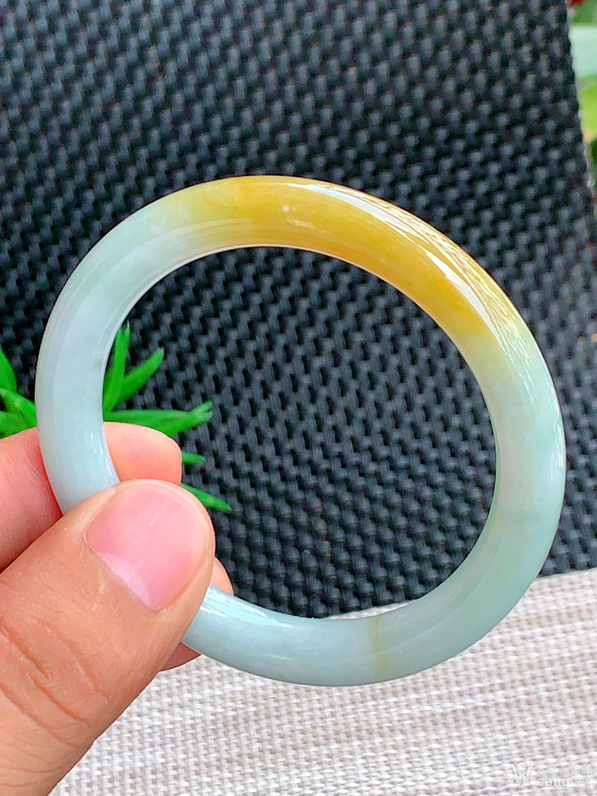 缅甸天然翡翠A货冰润飘黄翡圆条手镯55.6圈口