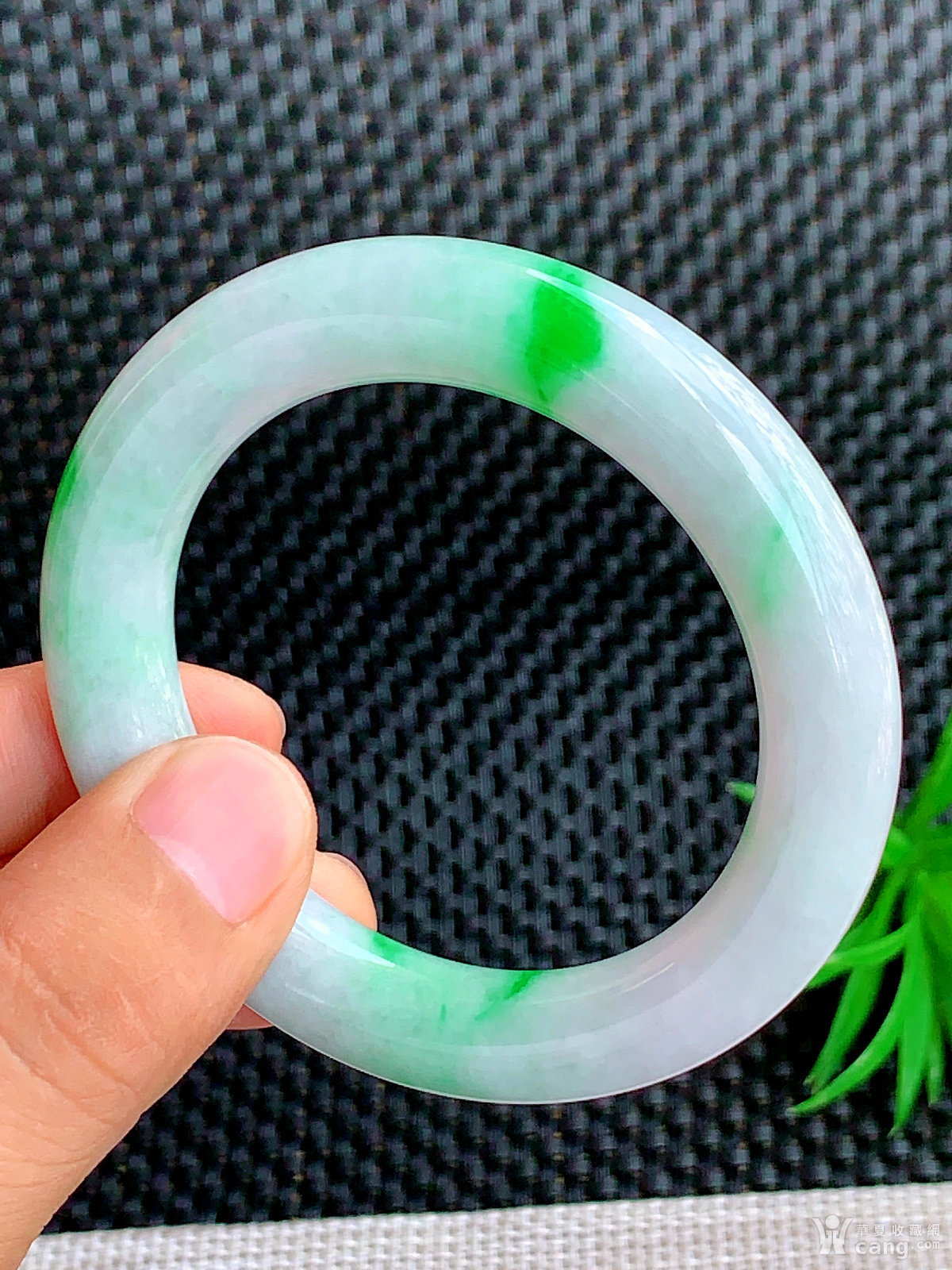 缅甸天然翡翠A货冰润飘花圆条手镯58.2圈口