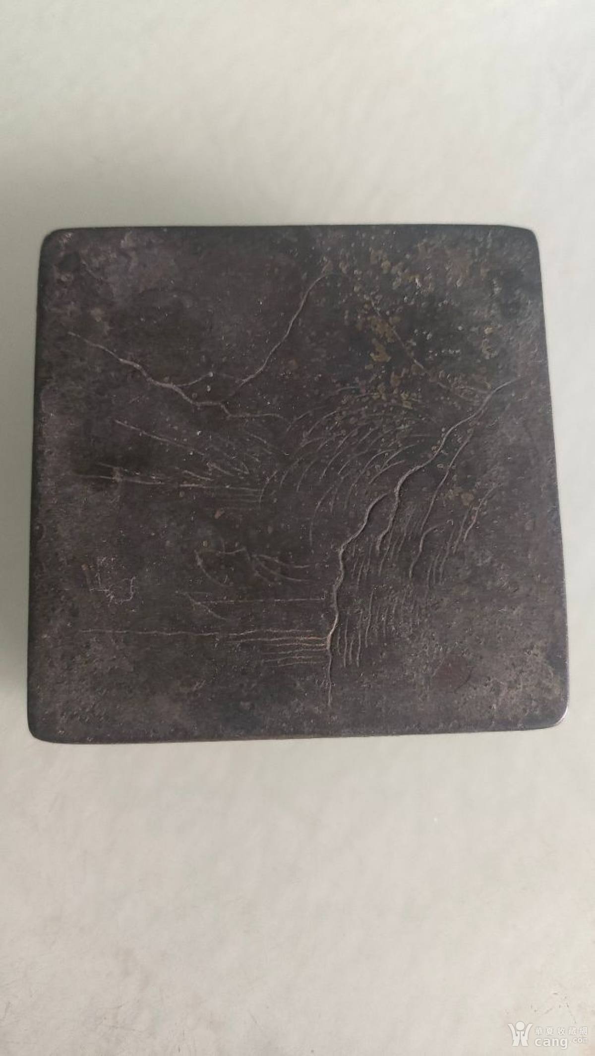 民国铜墨盒一个,雕刻山水。品如图,包老。