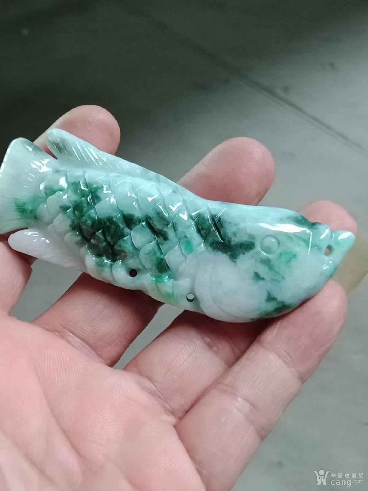 缅甸翡翠A2250-2A阳绿年年有余手把件(送证书)