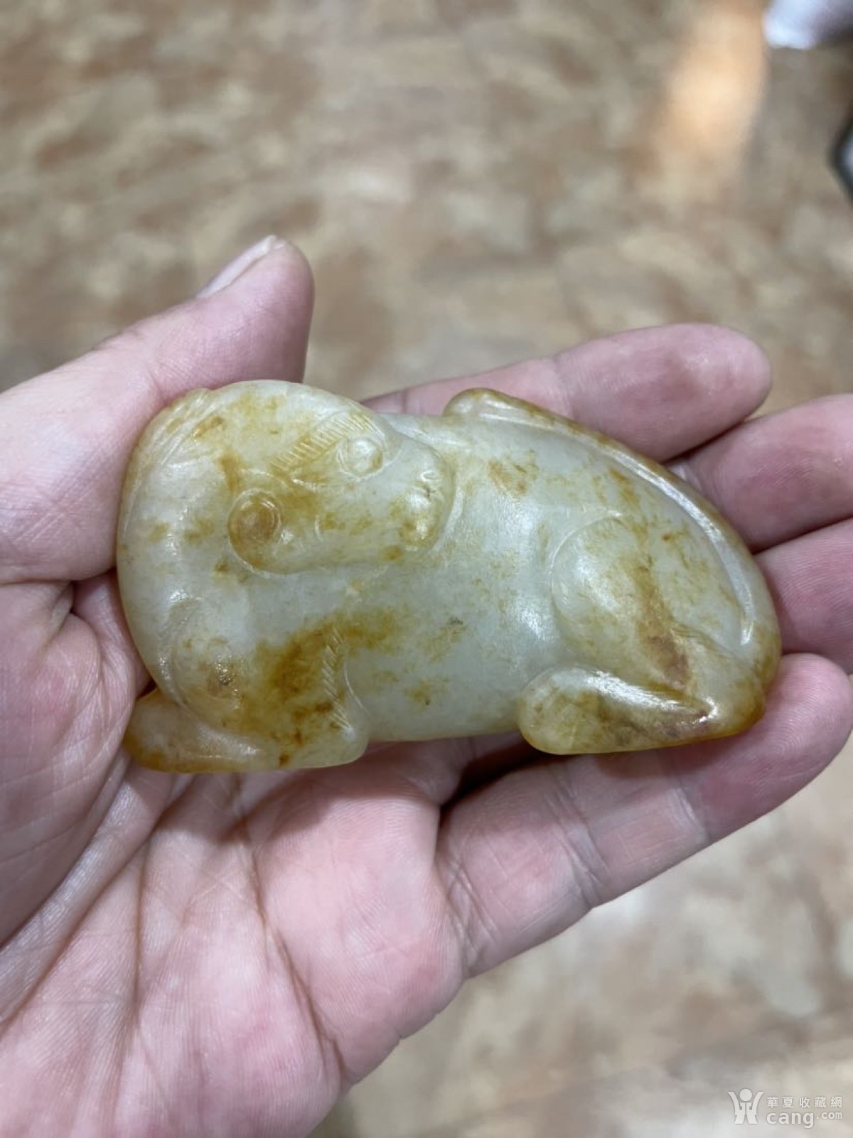 回流创汇的物件和田玉兽面满工珠子一对E155