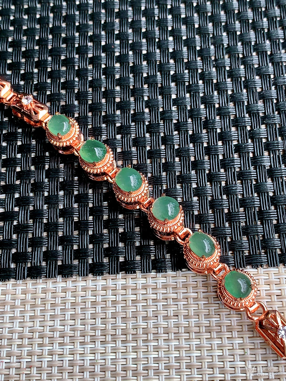 缅甸天然翡翠A货冰透水润满绿铜拖蛋面手链