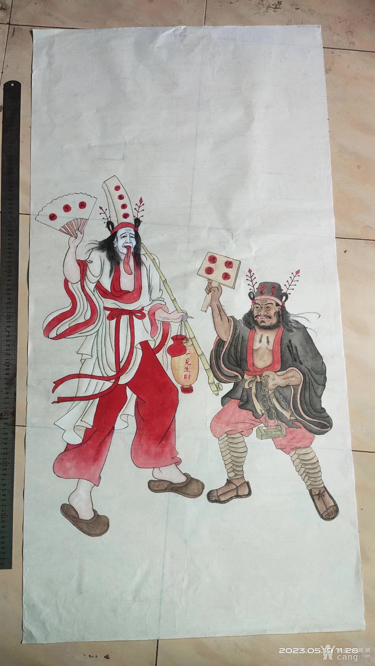 长130宽66厘米,手绘宣纸画国画黑白无常七爷八爷画像,包邮