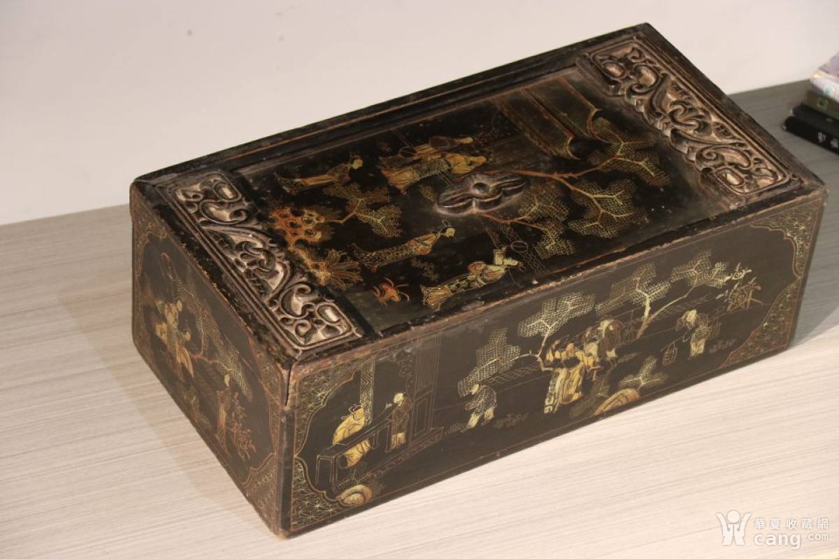 空间陈设 大漆描金人物•收纳箱; 尺寸: 长42,宽22,高