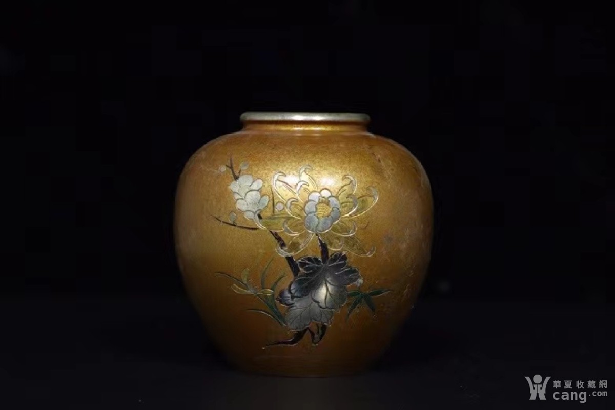 日本回流黄铜赏瓶黄铜菊花罐 尺寸;宽14厘米 高15厘米